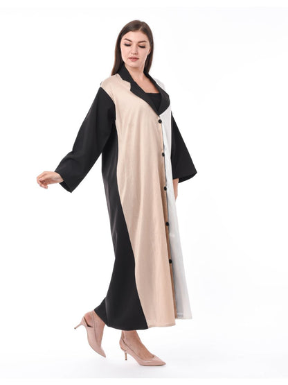 عباية بقصة معطف بتصميم كولور بلوك بارز هي اختيار لباس خارجي راقٍ. جددي خزانتك بهذه العباءة الساحرة. مخيطة بنسيج أكثر نعومة. عباءة بتصميم فاخر. متوفرة بجميع المقاسات. قومي بطلب عباءتك الآن.