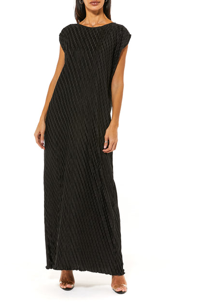 فستان باللون الأسود بدون أكمام و بقصة مريحة. سيعزز مستوى الأناقة و الراحة.