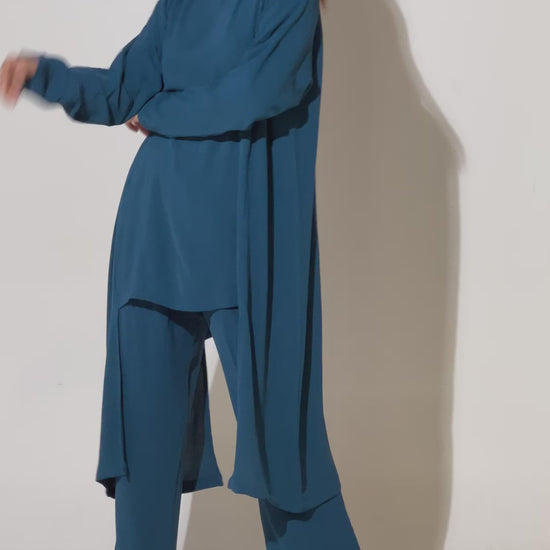 طقم لباس علوي و بنطال من قماش سي اي واي باللون الأزرق و الملحوظ على الفور عند النظر لهذه ملابس السفر الملفتة. قومي بتجديد و تحديث مجموعتك مع ملابس السفر هذه التي صنعت من قماش ناعم و الذي يسمح بمرور الهواء. ستمنحك مظهراً أنيقاً و راق للغاية. ملابس السفر هذه تضم أحدث تصميم. متوفرة بجميع المقاسات. قومي بطلب ملابس سفرك الآن.