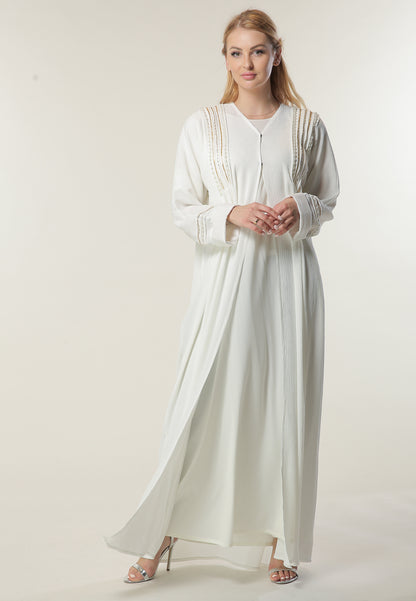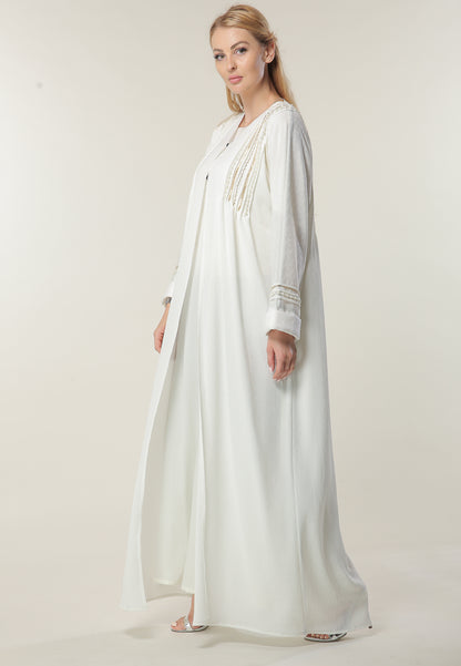 عباية من مويستريت باللون الأبيض مع زخرفة يدوية