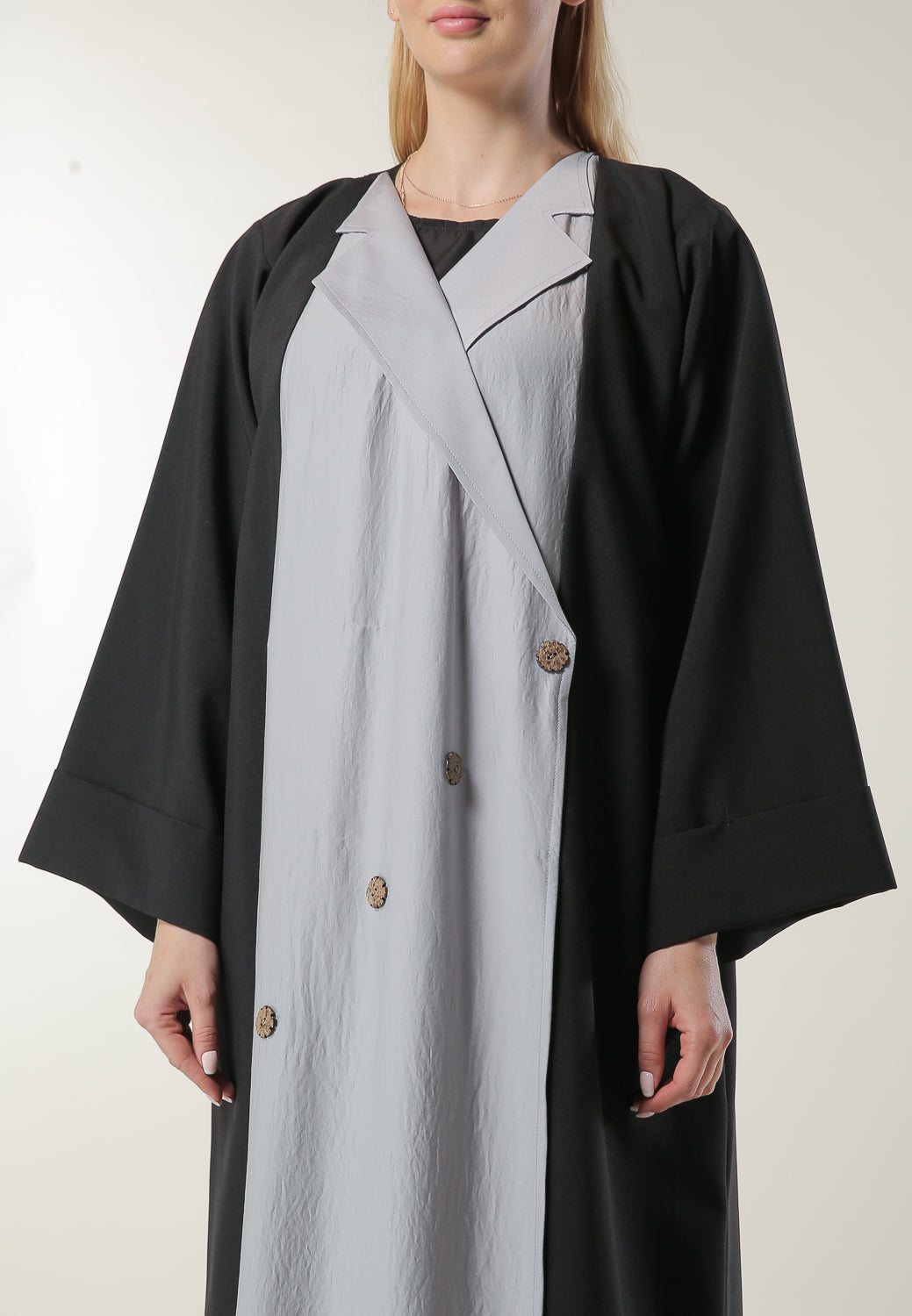 MOiSTREET Colorblock Casual Abaya with Button Detailing