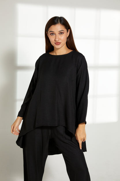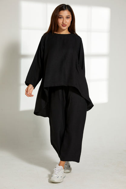 MOiSTREET Black CEY Mélange Fabric Top And Pants Set