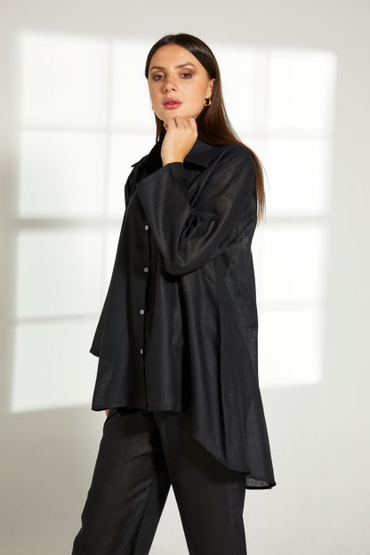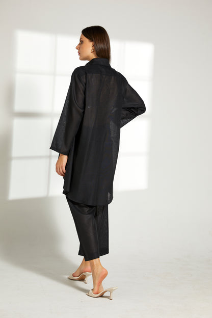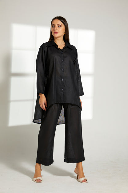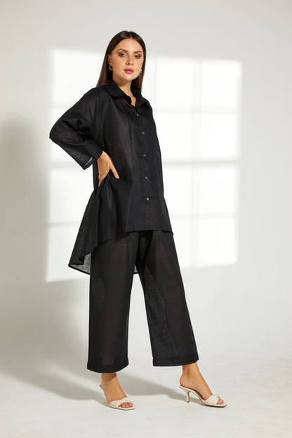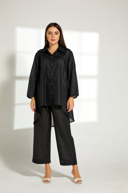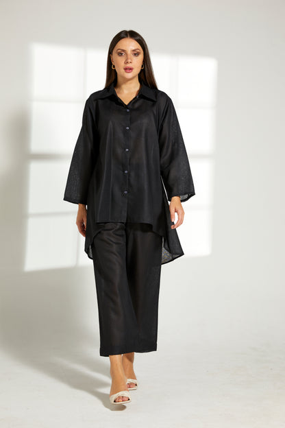 MOiSTREET Black Linen Fabric Top and Pants Set