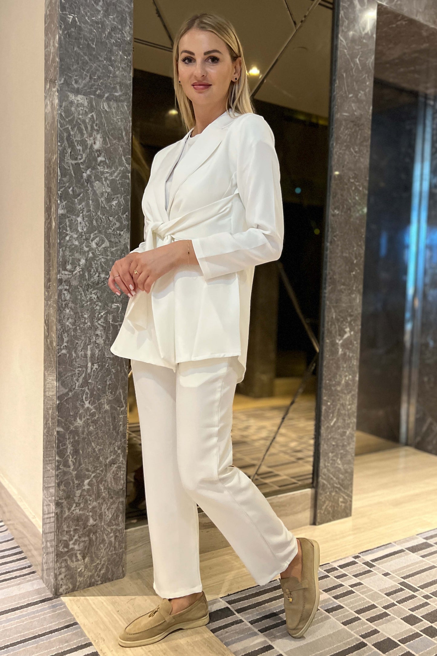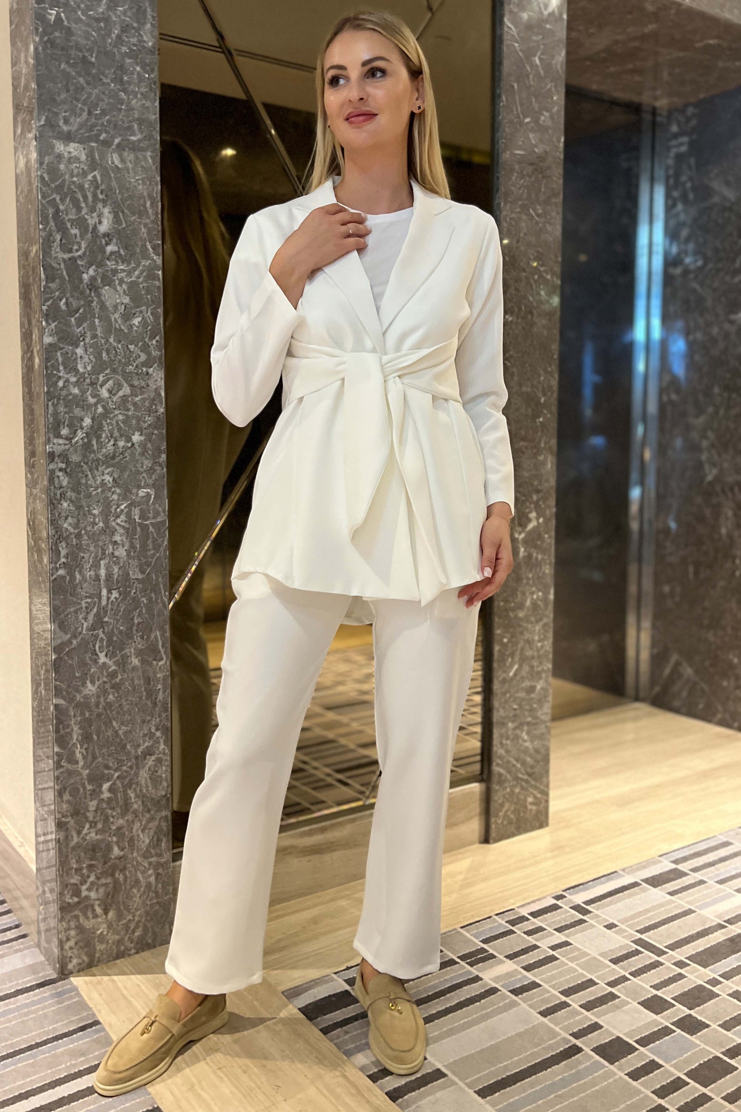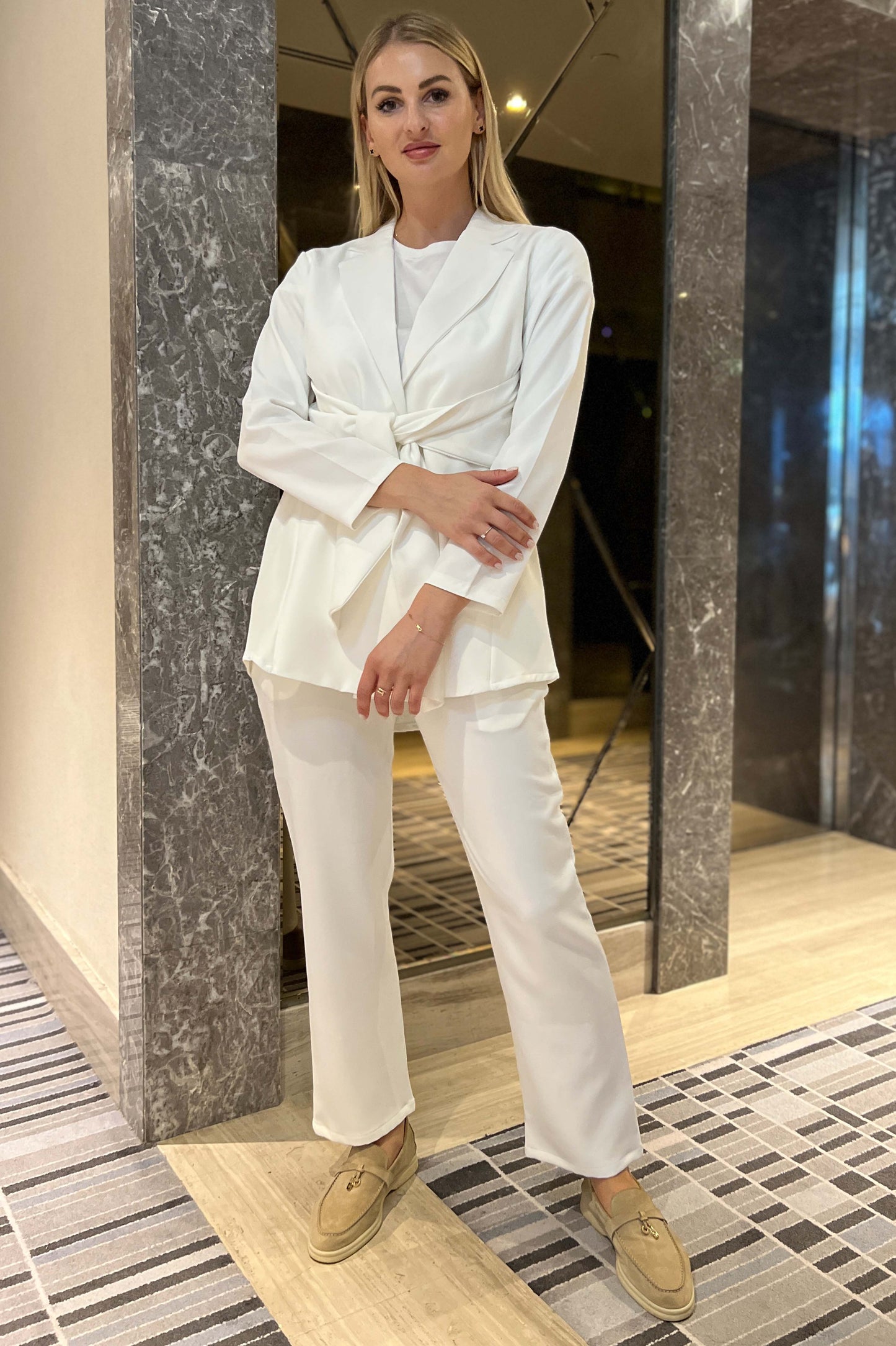 MOiSTREET Off White Barbie Crepe Fabric Blazer and Pants Set