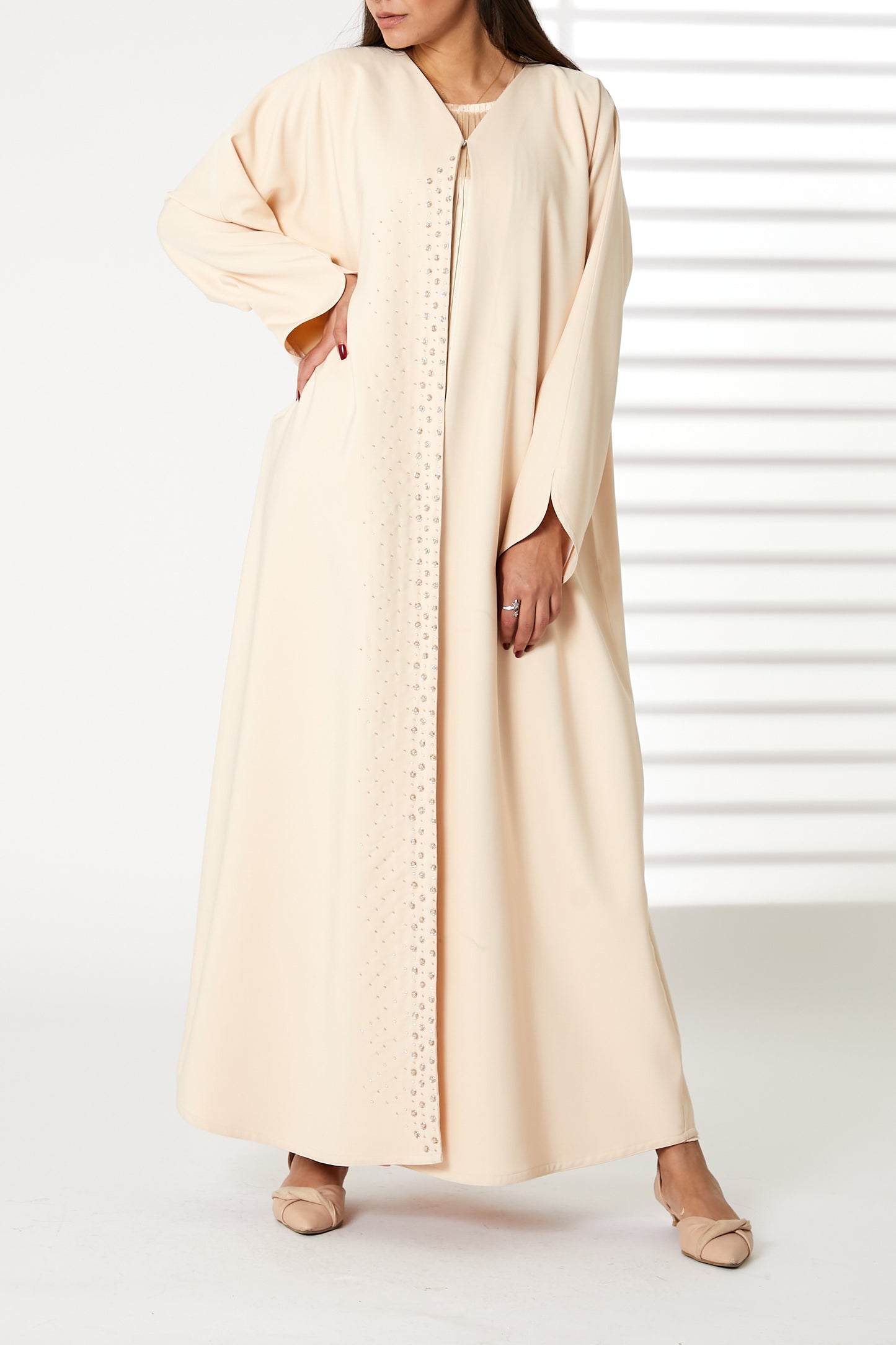 MOiSTREET Peach Front Embroidered Nida Open Abaya