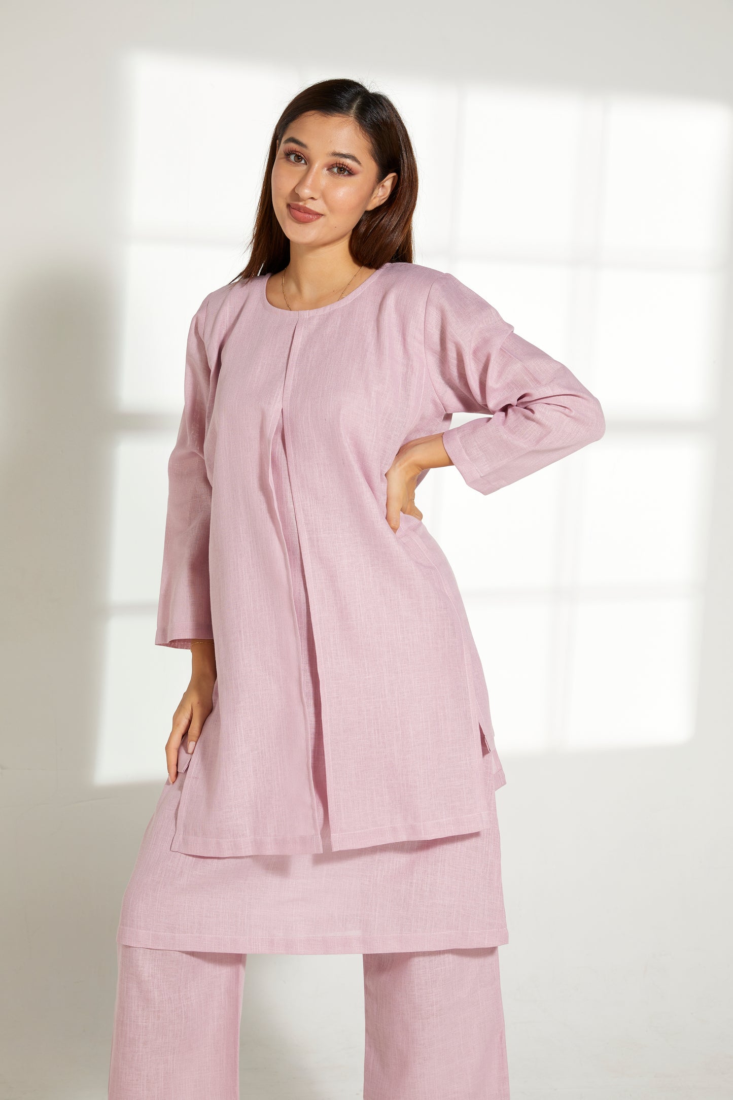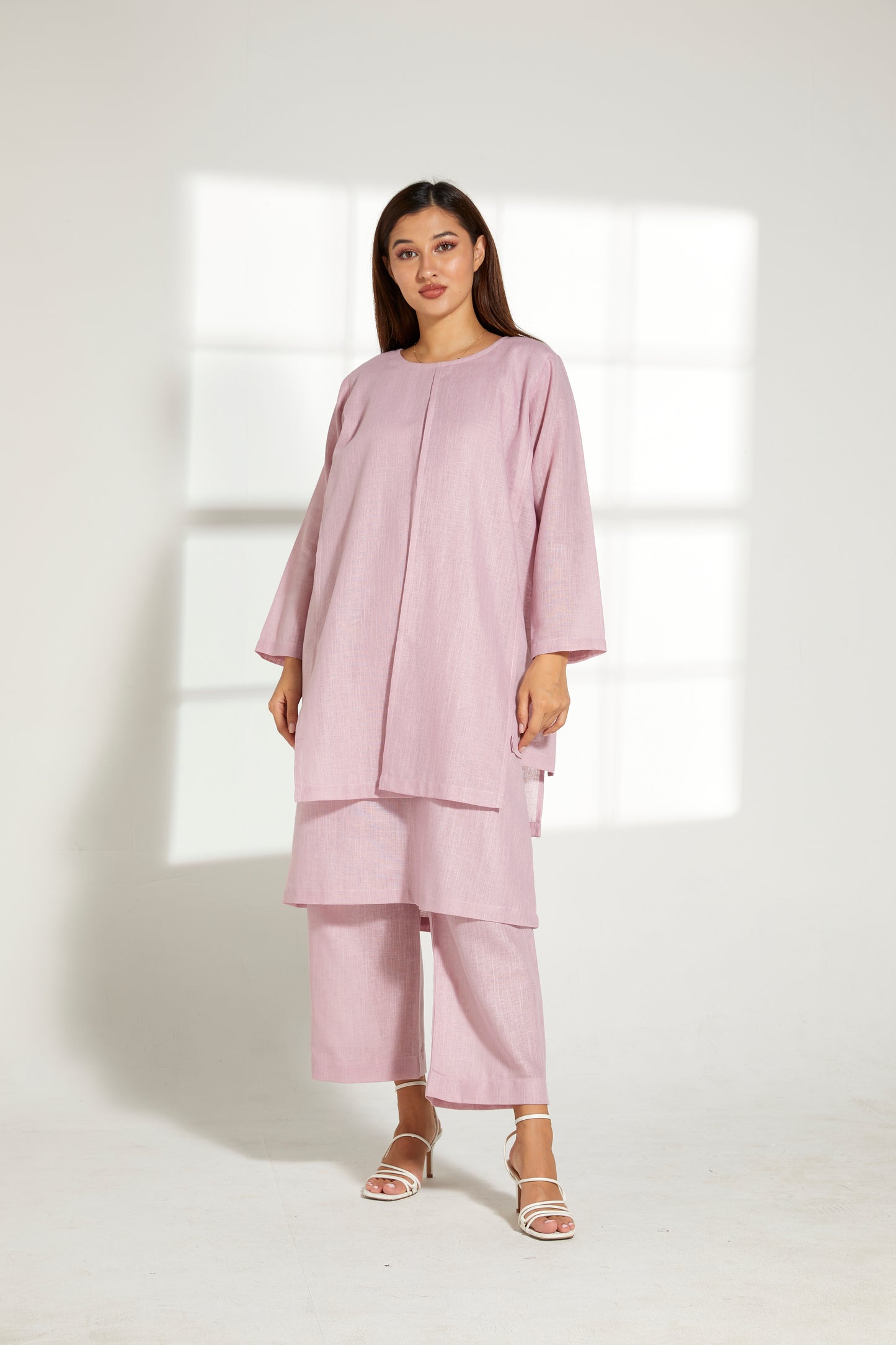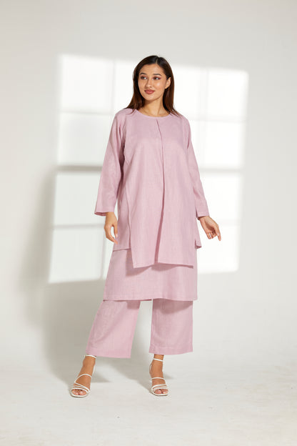 MOiSTREET Pink Linen Fabric Top and Pants Set