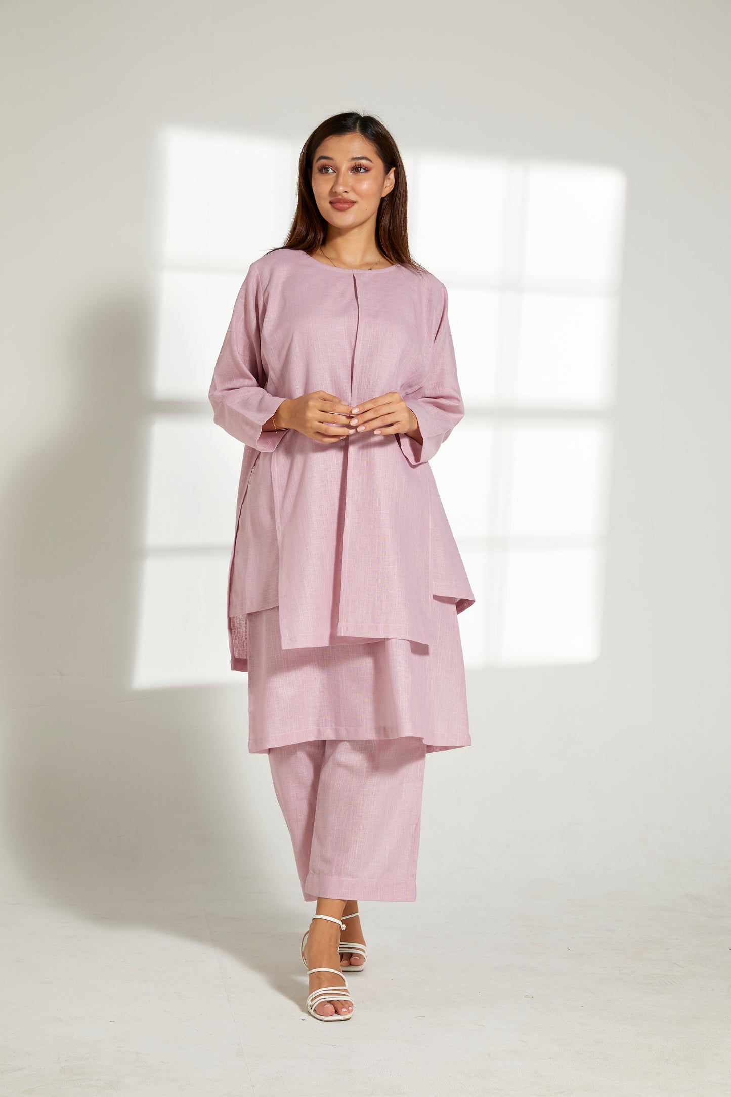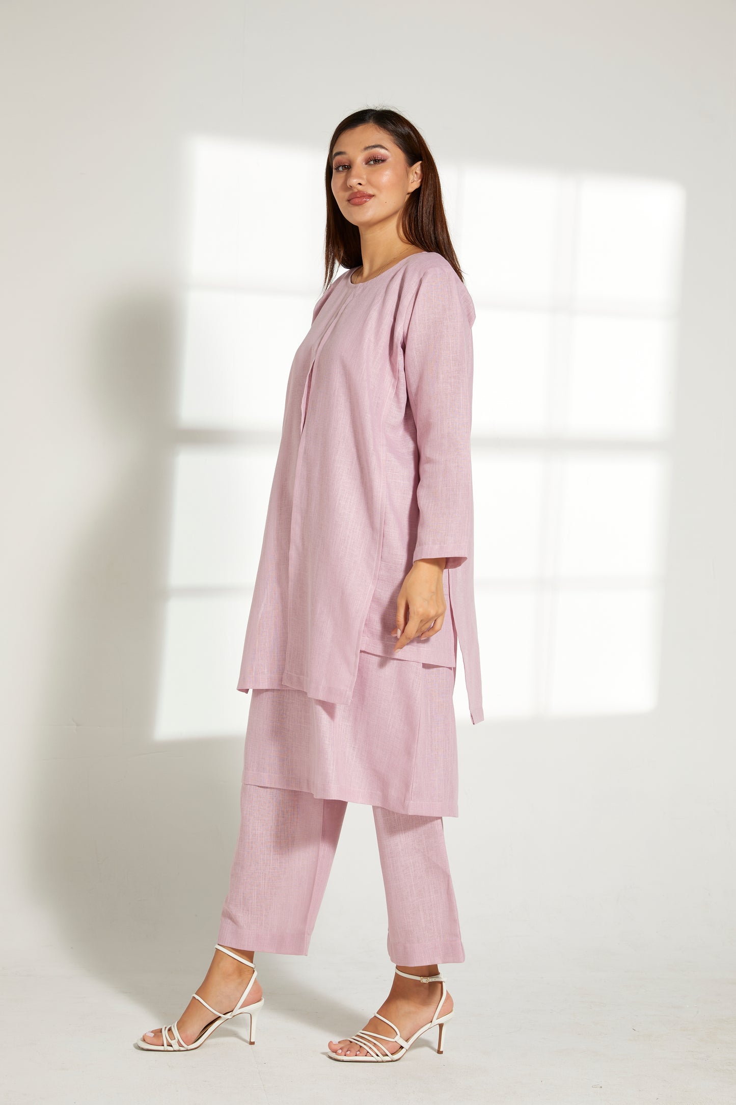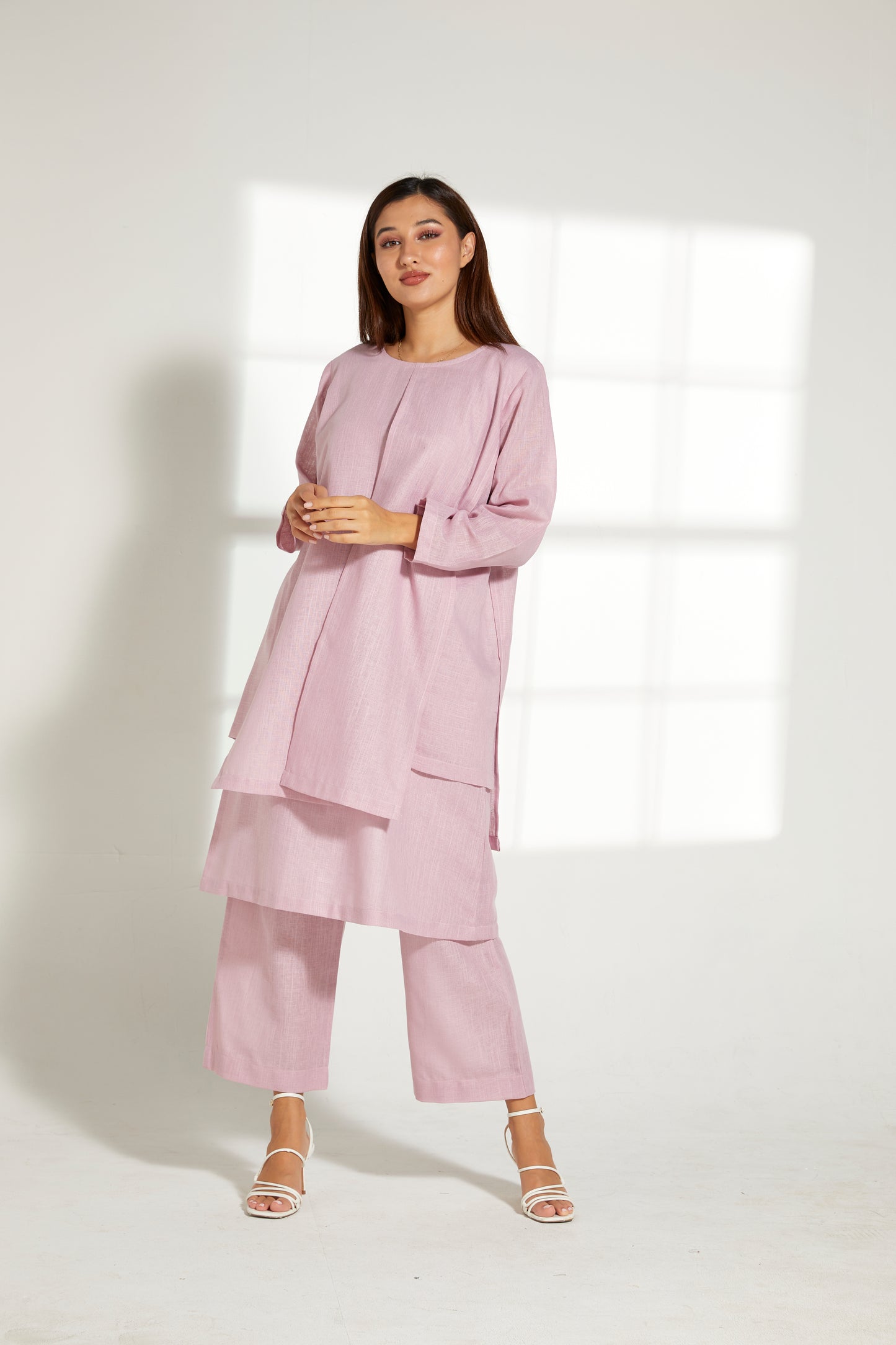 MOiSTREET Pink Linen Fabric Top and Pants Set