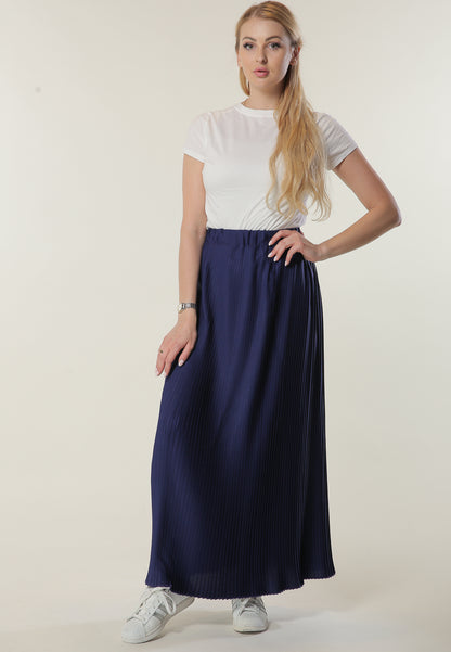 Navy Pleated Skirt made of Butter Crepe with a relaxed fit. It will enhance the stylish and comfort level.